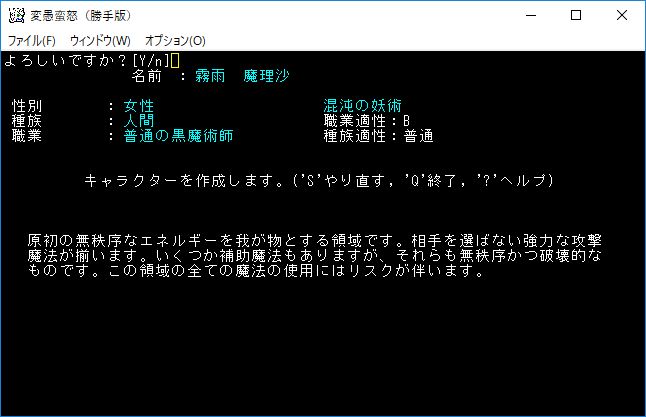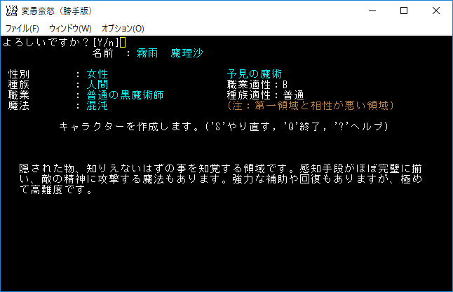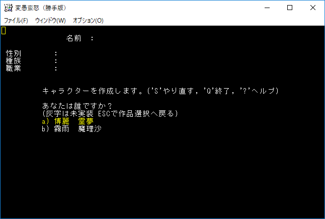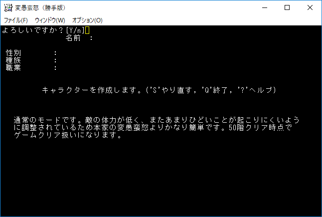 変愚蛮怒や勝手版についての解説はゲームに慣れてからします。プレイヤーを作成してゲームを楽しみましょう!