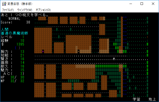 以上を設定するとゲームが始まります。うーむ、MAPは普通の変愚蛮怒と同じ・・・じゃない!!ちょっと違う!