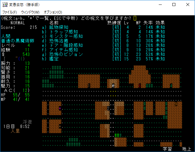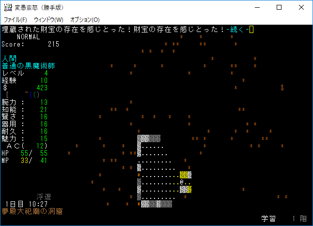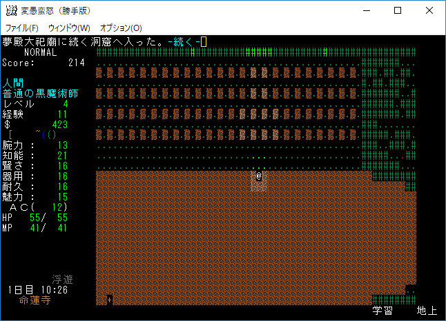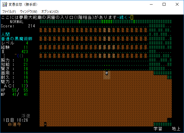 おはようございます。変愚蛮怒東方Project勝手版のプレイ日記を始めます。今回はダンジョンを探して探索をします。