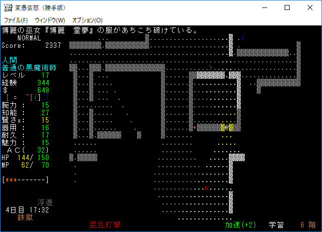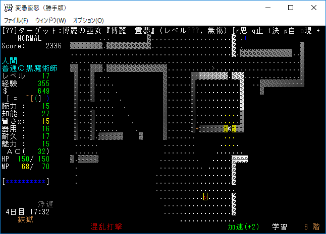 おはようございます。変愚蛮怒東方Project勝手版のプレイ日記を始めます。前回は間違えて階段を降りてしまいザックが一杯のままランダムクエストに突入しました。地下6階を守護しているのは『トラのホッブス』です。