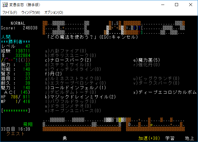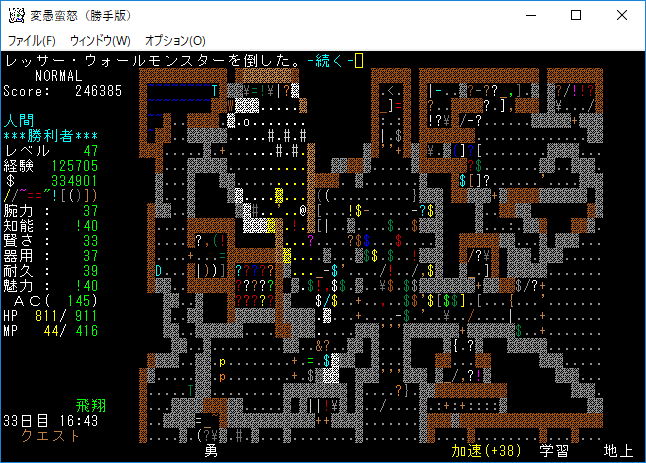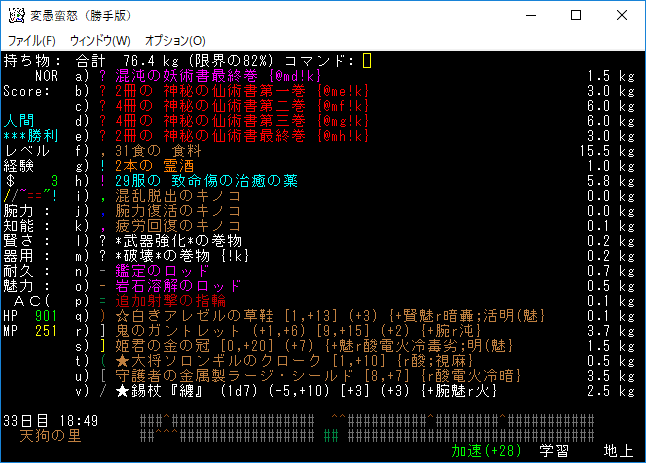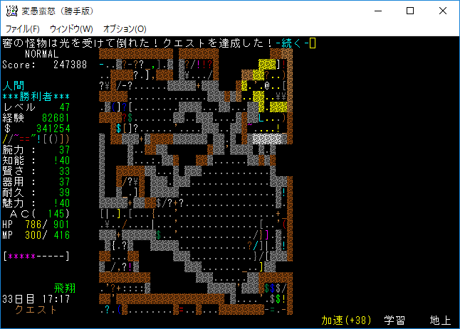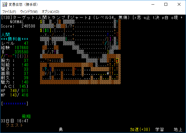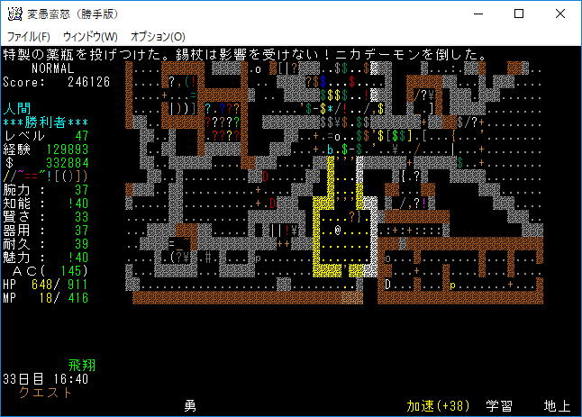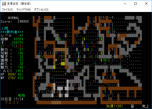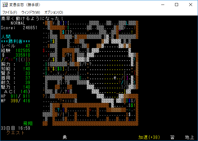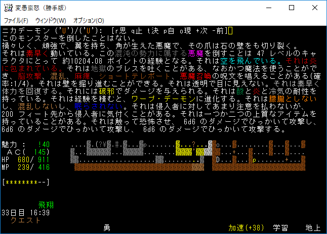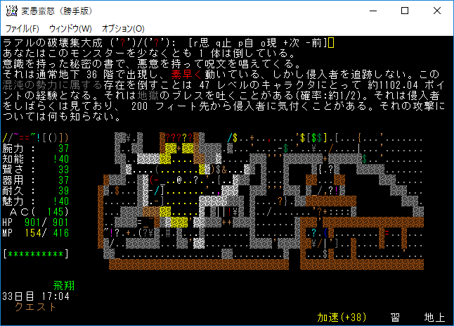 おはようございます。変愚蛮怒東方Project勝手版のプレイ日記を始めます。クエスト『古い城』を攻略しております。タイタンを撃破するも死の騎士にモンスターを召喚されてしまいました。