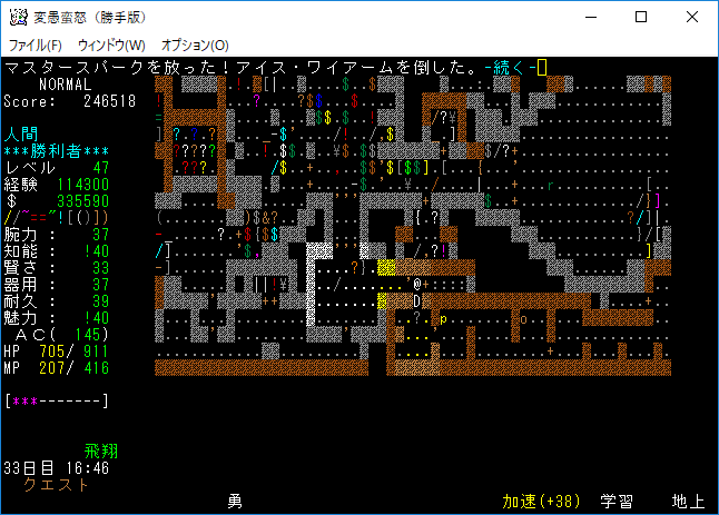 次は右下のフロアに行きます。こちらにはランダムに配置されたユニークがいるのかな。フロアの入口はアイスワイアームが守っていました。マスタースパークを撃って美味しくドロップを頂く。