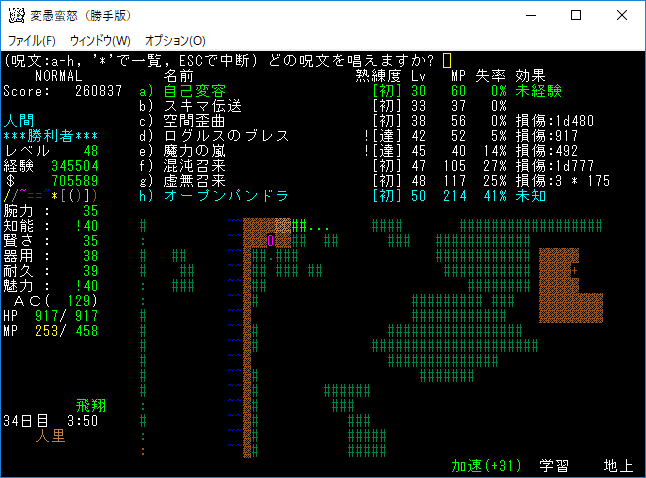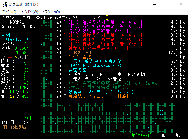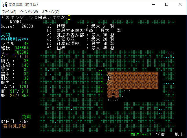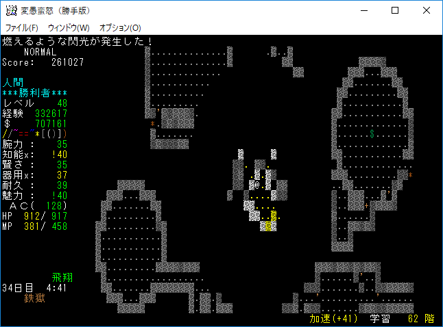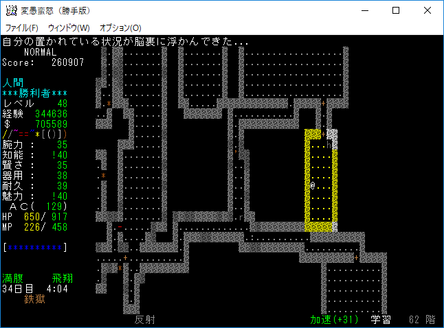 おはようございます。変愚蛮怒東方Project勝手版のプレイ日記を始めます。今回は鉄獄62階ランダムクエストに挑戦をします。まだ余裕で勝てる階層だろう。