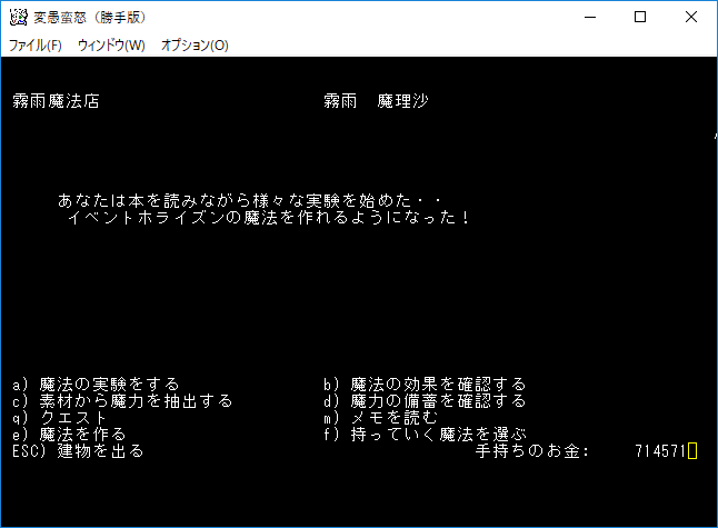 強敵ばかりで疲れたから人里に帰還をする。今回の収獲は召喚の魔術書最終巻ですね。霧雨魔法店に行って自作魔法のレシピにしよう。