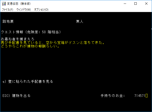 マジかよ。レジェンドと遭遇をしてしまった。この人が誰なのか説明は不要でしょう。本家変愚蛮怒を世界で初めて*勝利*してユニークモンスターになったそうです(たぶん)。*勝利*をした時の職業はレンジャーだったらしい(たぶん)。