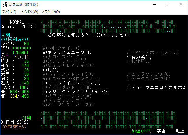 持って行く自作魔法は上の画像。マジックドレインミサイルを作製したのは失敗だった。幻の魔力が枯渇してしまう。