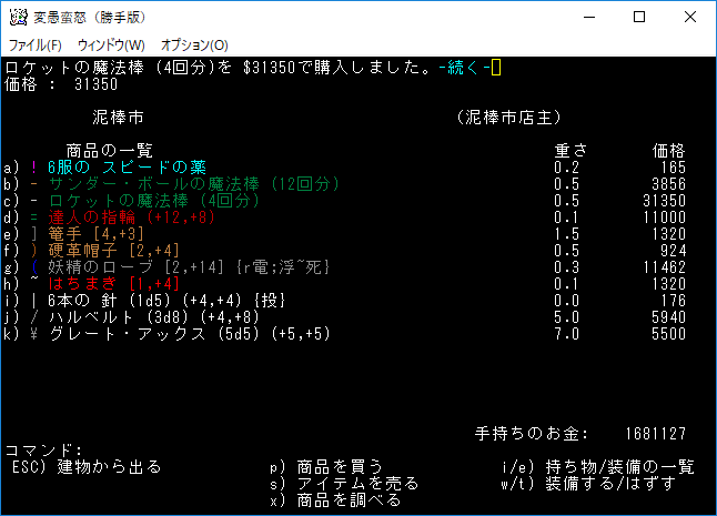 ロケットの魔法棒を購入しました。これは良い買い物をした。アンバーの王族狩りに役立つはずだ。