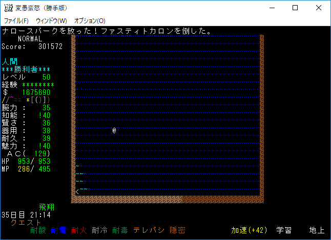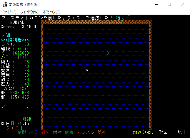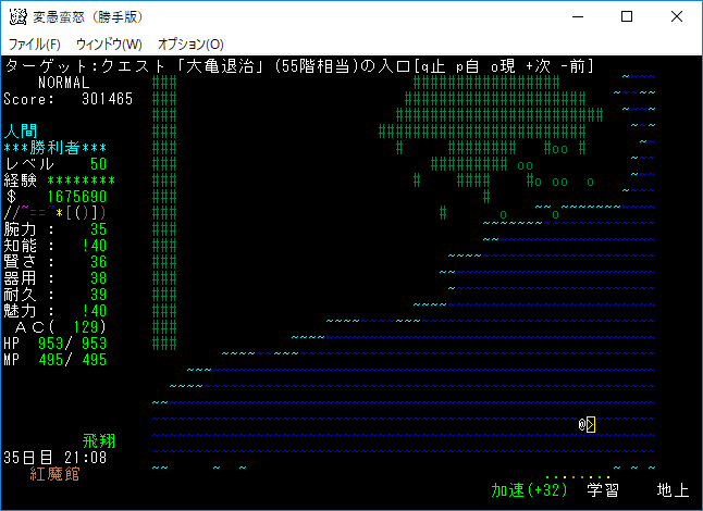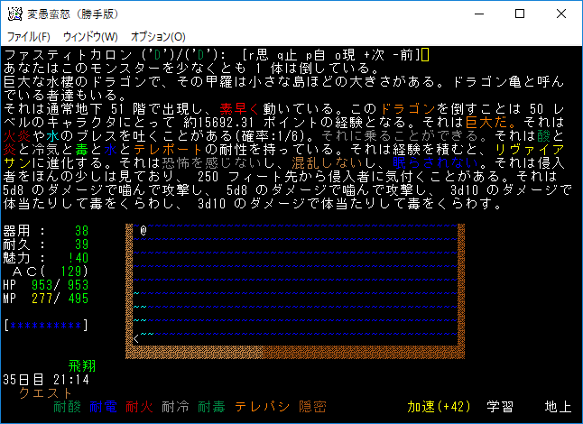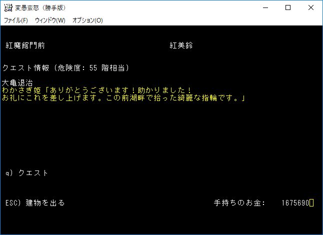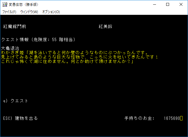 おはようございます。変愚蛮怒東方Project勝手版のプレイ日記を始めます。今回は気分を変えてクエストに挑もうと思います。簡単そうな『大亀退治』クエストをやってみましょう。