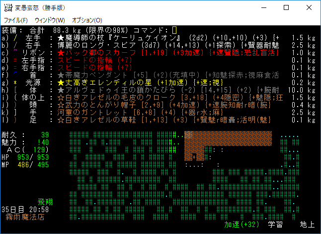 装備は変わっておりません。耐性パズルをサボっています。アーティファクトは揃っている。やる気の問題なんだよ。私は根気がないからダメなのだ。