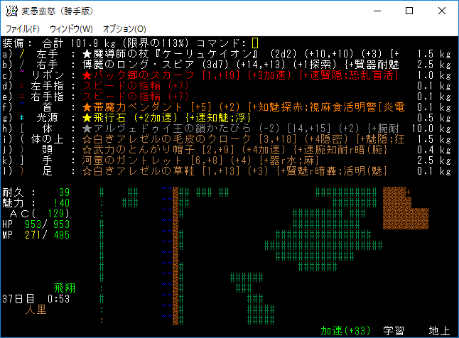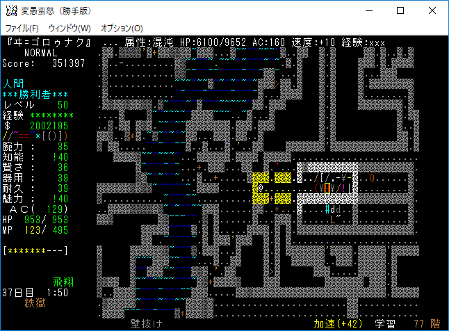おはようございます。変愚蛮怒東方Project勝手版のプレイ日記を始めます。今回は鉄獄を探索しよう。王族を狩りながらアーティファクトを漁るのです。アンバーの王族を全滅させないとオベロンと戦うのは危険だ(俺はそう思う)。