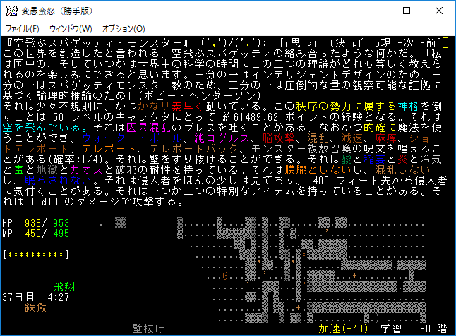 『空飛ぶスパゲッティ・モンスター』を発見。見たことのないユニークだな。元ネタはSF小説なんだろうか。このモンスターもテレポートを使うから苦労しそう。
