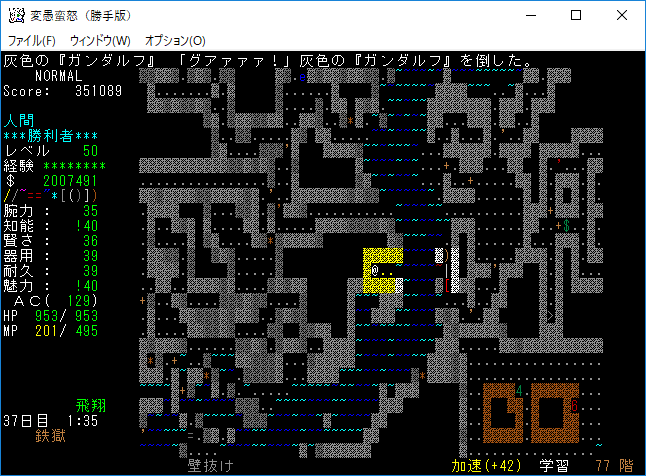 灰色の『ガンダルフ』は友好的なユニークだ。召喚祭りが怖いからしっかりと倒しておこう。本家の性格なまけものの場合、友好的なユニークを上手く戦わせるのが重要(という書き込みを見た)。