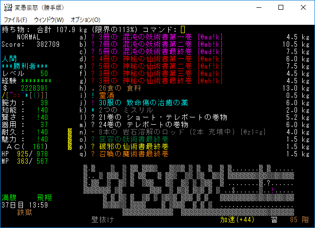 魔力復活の薬をケチって破壊をしながら休憩をする。隣接テレポートを使って邪魔をされたよ。こいつは次のプレイ日記でトドメを刺そうかな。