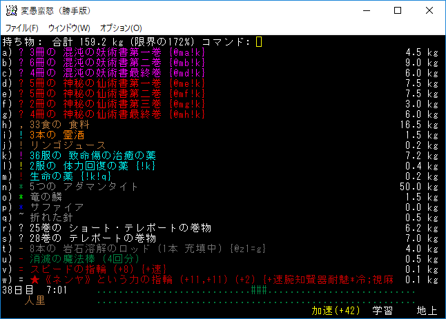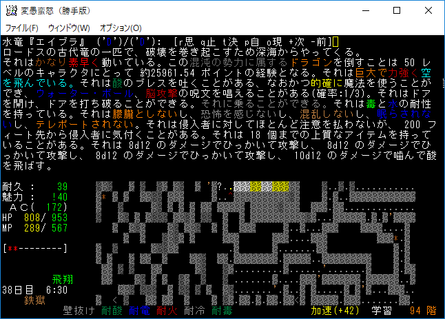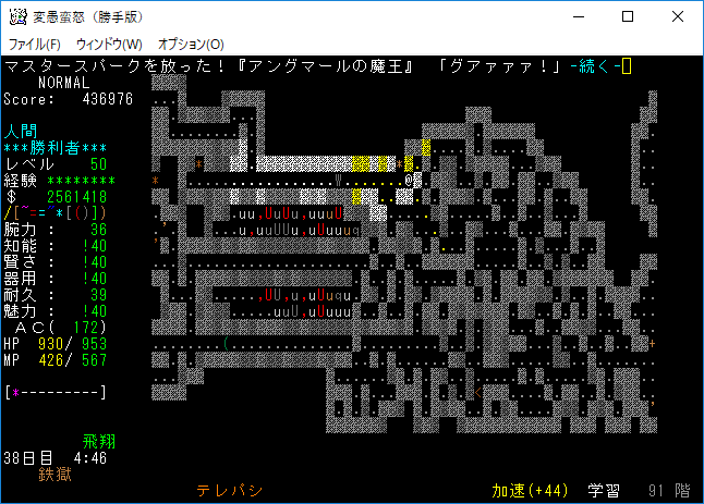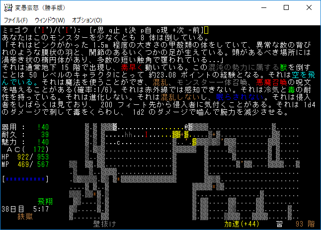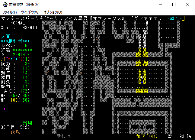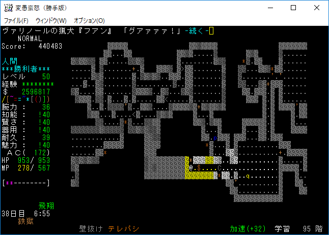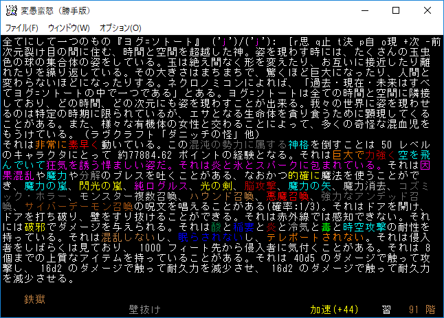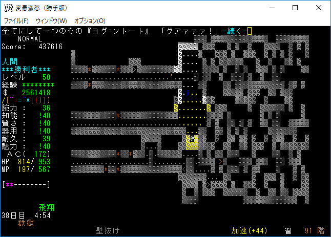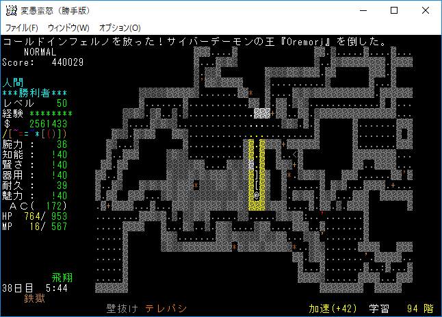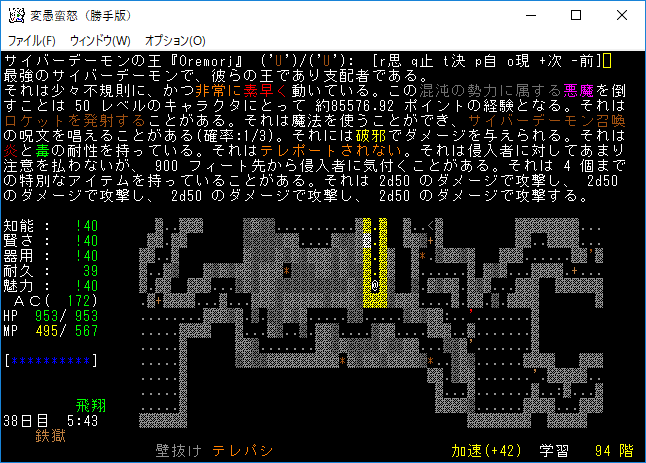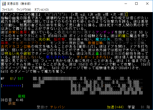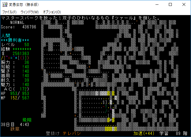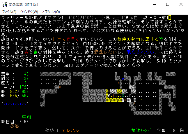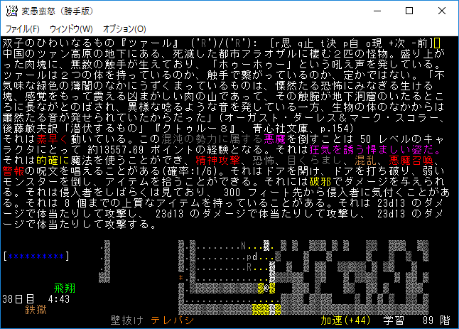 おはようございます。変愚蛮怒東方Project勝手版のプレイ日記を始めます。今回は鉄獄に潜って宝石を集めたい。残るクエストは高難易度のものばかりだ。高威力の自作魔法をガンガン使わないと死んじゃいます。