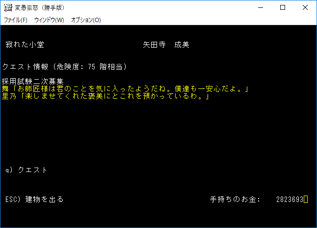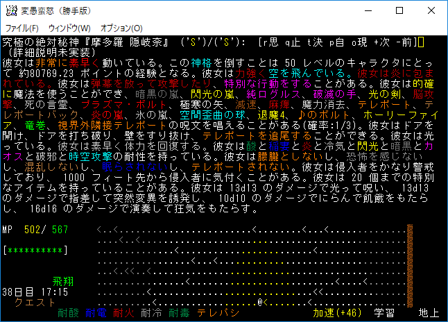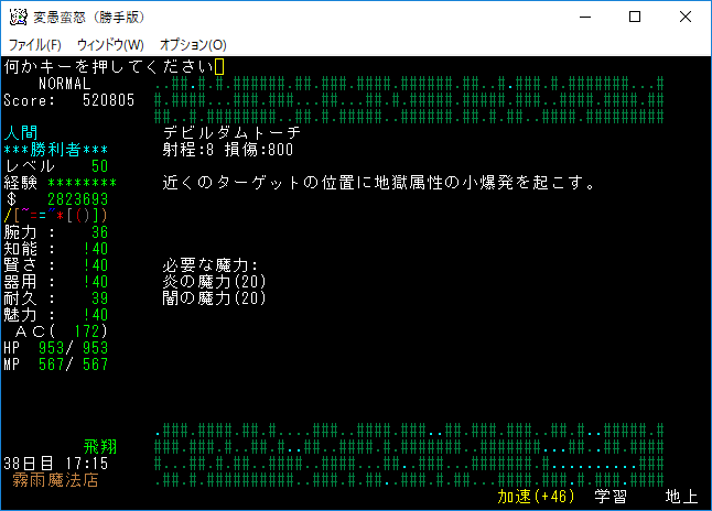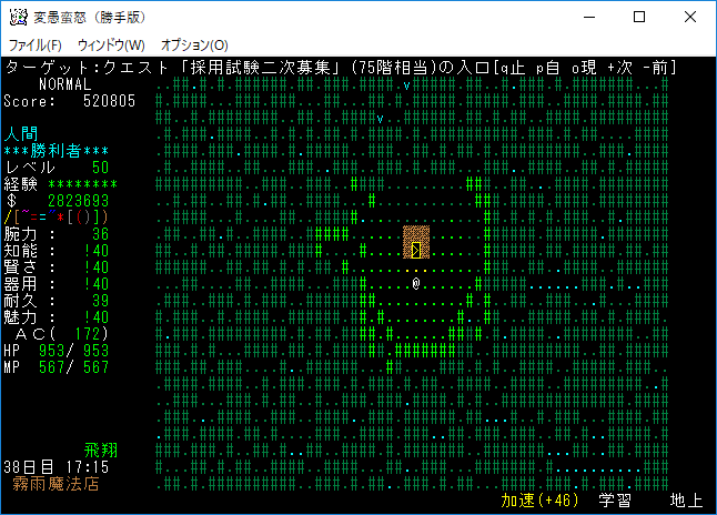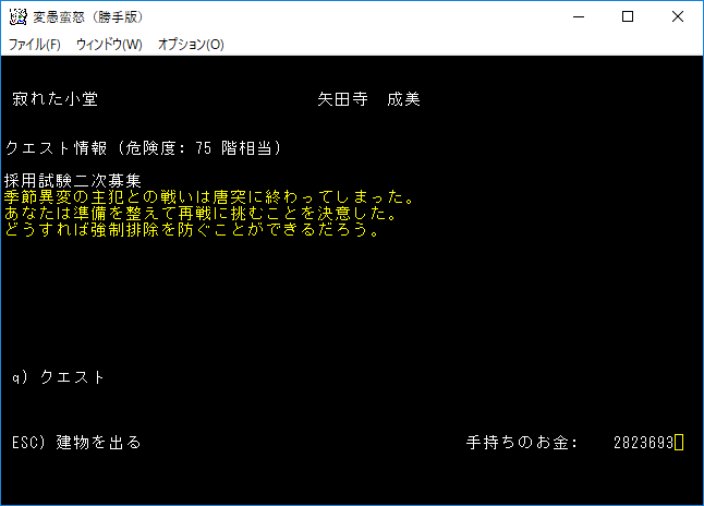 おはようございます。変愚蛮怒東方Project勝手版のプレイ日記を始めます。今回は採用試験二次募集に挑戦をしたい。強いユニークと戦うクエストです。