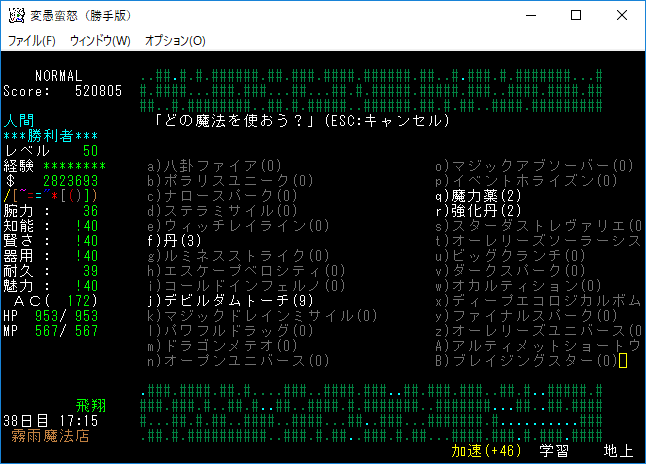 敵のテレポートを追撃してデビルダムトーチを放つ。トドメくらいは自作魔法を使いましょう。今回は魔力の嵐が大活躍をしました。