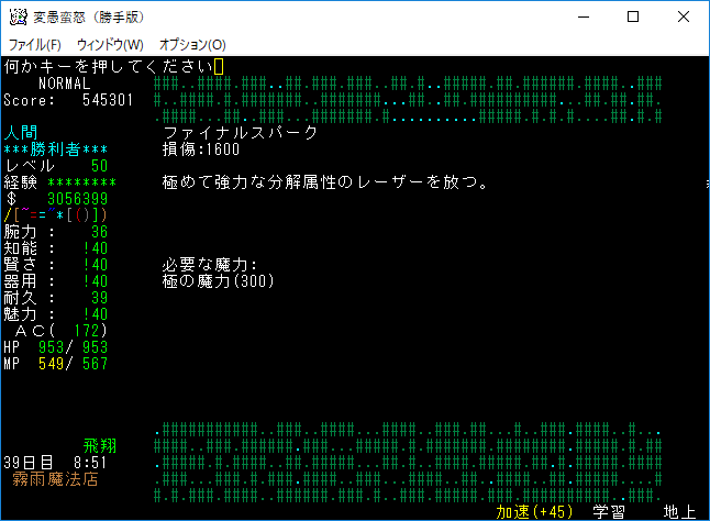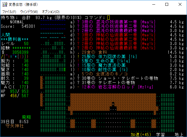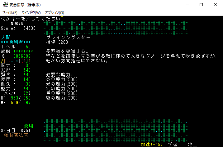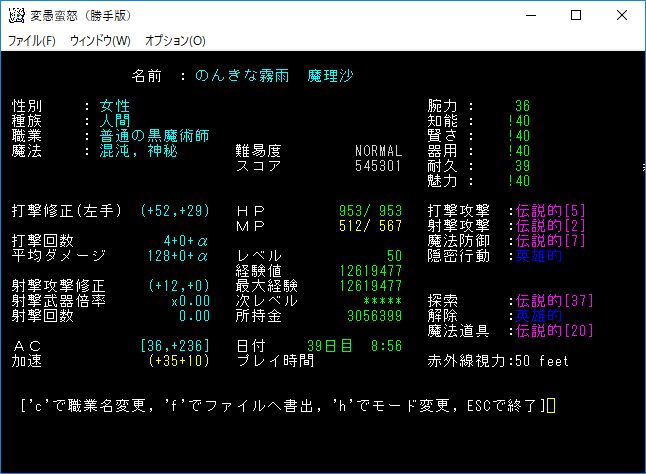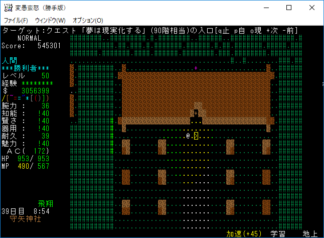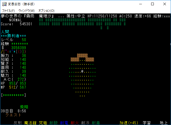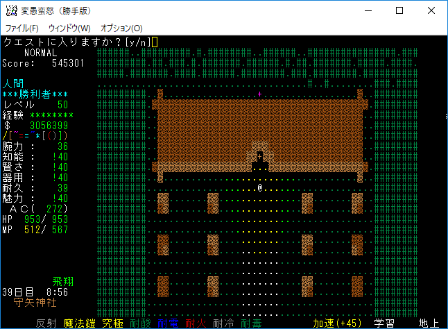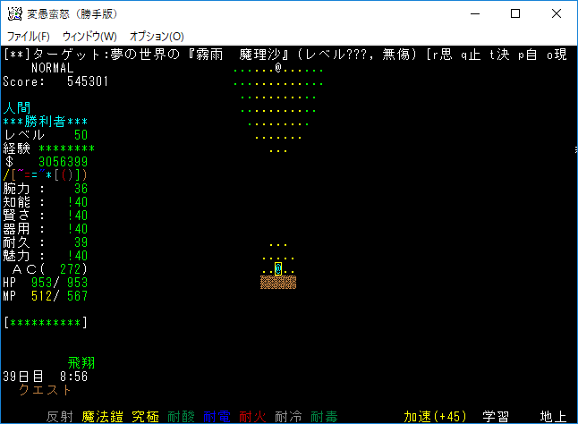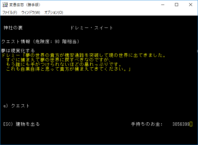 おはようございます。変愚蛮怒東方Project勝手版のプレイ日記を始めます。今回は『夢は現実化する』クエストに挑戦をしよう。wikiを見たけど誰と戦うのか分からなかった。