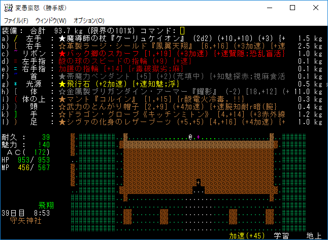 装備は変わっていません。そろそろパズルをして気分転換をしたい。アーティファクト生成の巻物が欲しいなあ。
