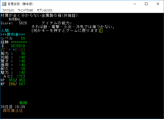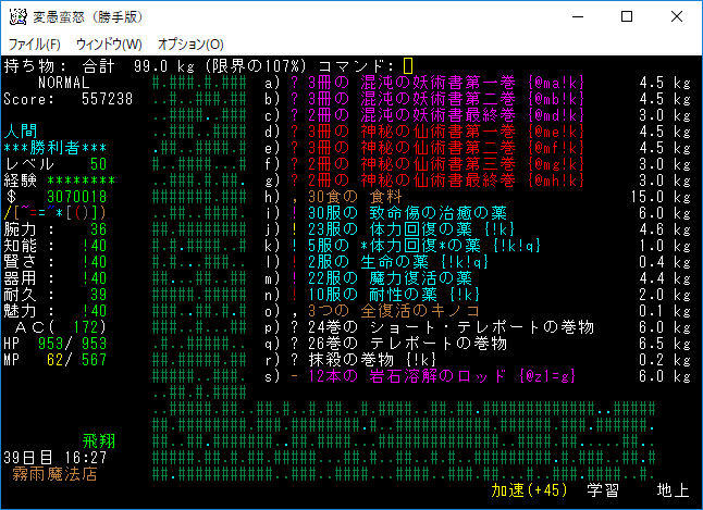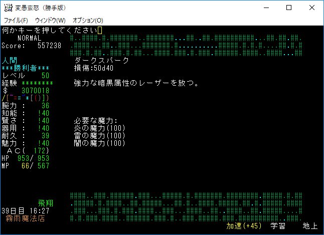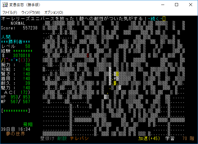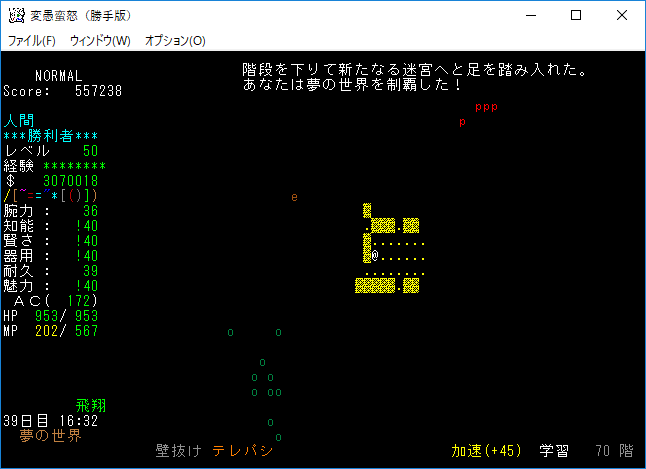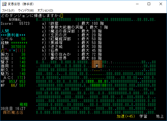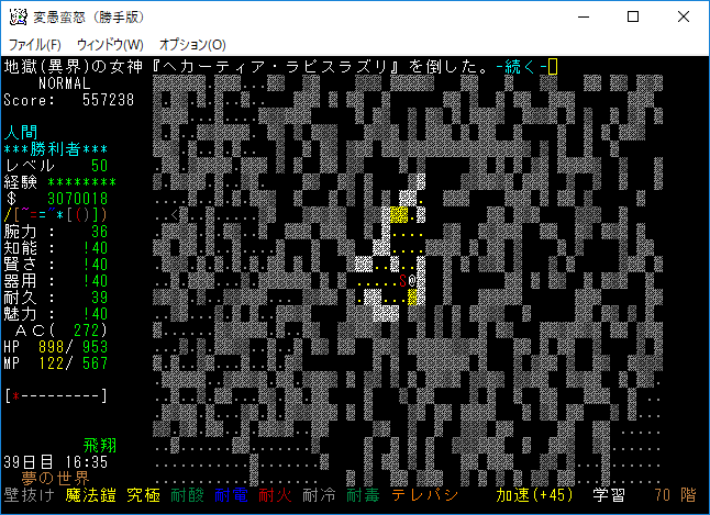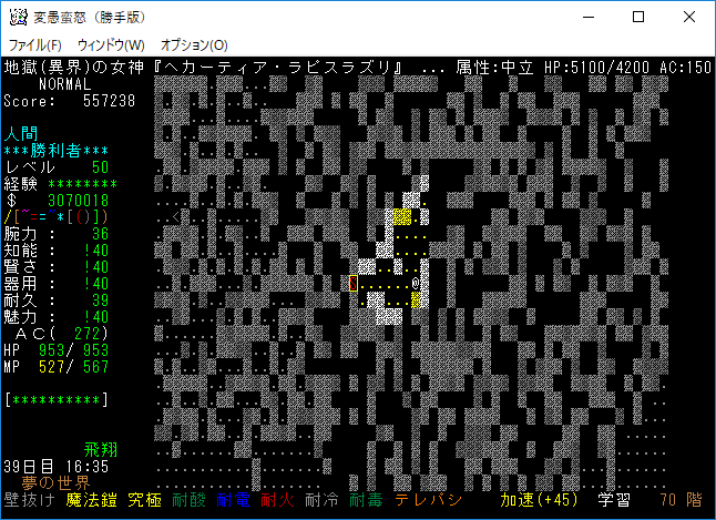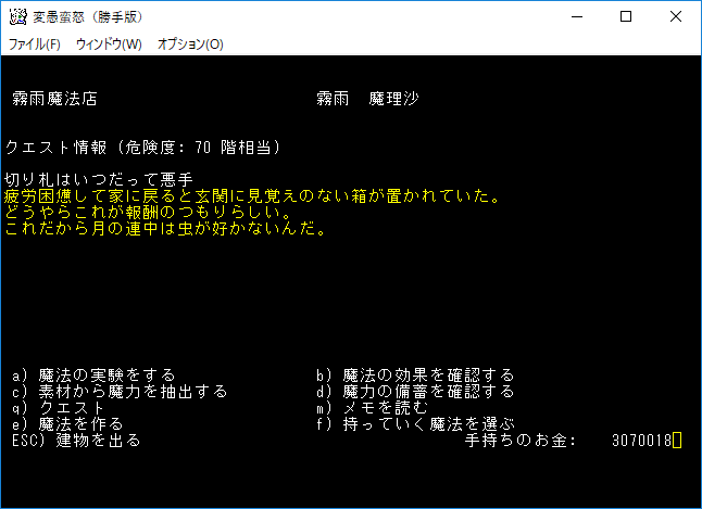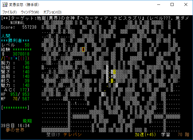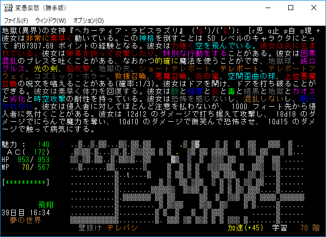 変愚蛮怒東方Project勝手版のプレイ日記を始めます。切り札はいつだって悪手のためにダンジョン夢の世界を攻略中です。今回は地下70階にいるダンジョンの主を討伐します。