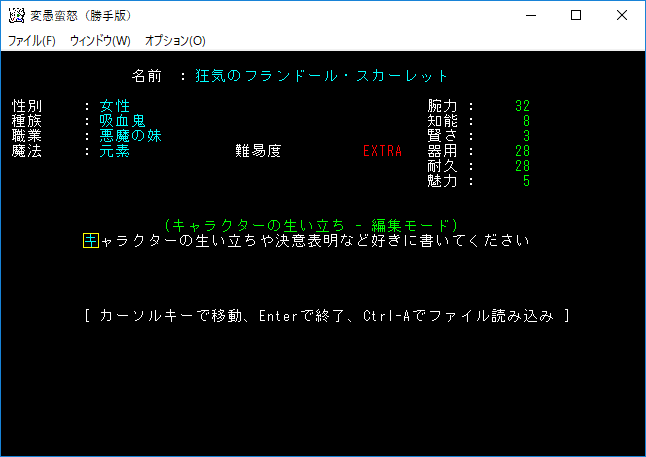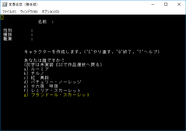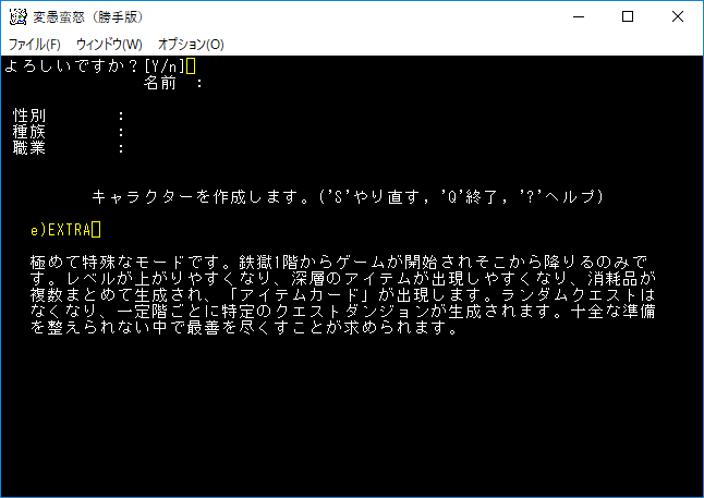 キャラクターの作成からやり直しです。難易度はEXTRAを選択します。またパチュリーでプレイをしたいな。モンスターの増殖さえ防げば安定すると思うのだが。