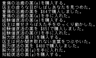 アイテムを無視して歩くなんて新鮮な気分だよ。ようやく地下6階の施設が判明する。正直、薬屋は期待はずれだった。鑑定の薬は売ってないんですかね。