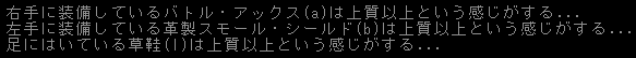 なんとチルノちゃんが身につけている武具を簡易鑑定しました(上の図)。装備している物だけを察知するのかね。いきなり簡易鑑定をされても信用できない(笑)。