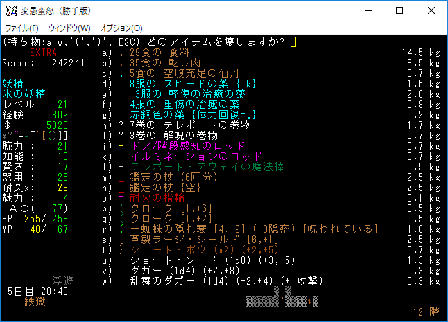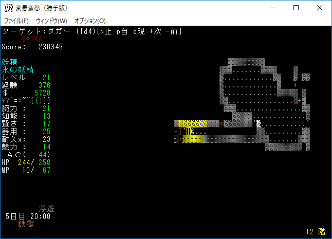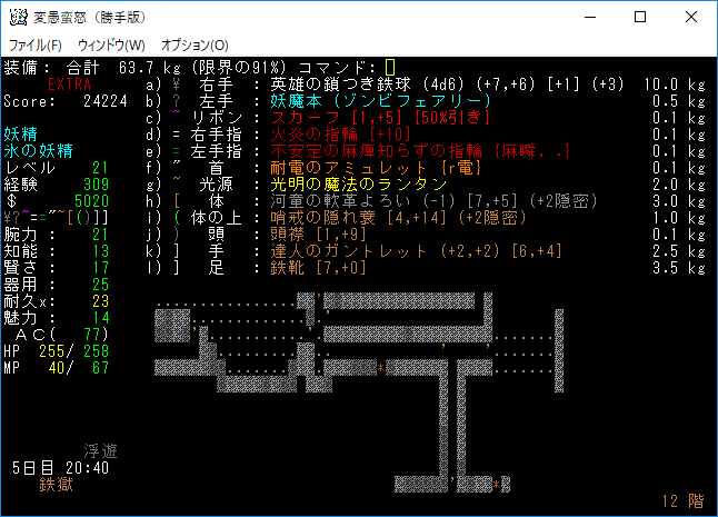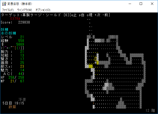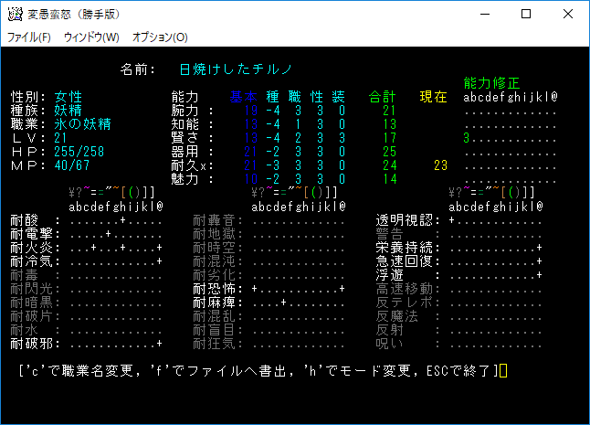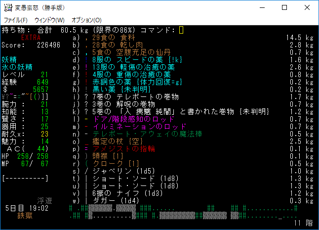 変愚蛮怒東方Project勝手版のプレイ日記を始めます。日焼けしたチルノをプレイ中です。引き続き地下11階を探索していこう。達人の指輪とナイフは破壊しても良いかな。