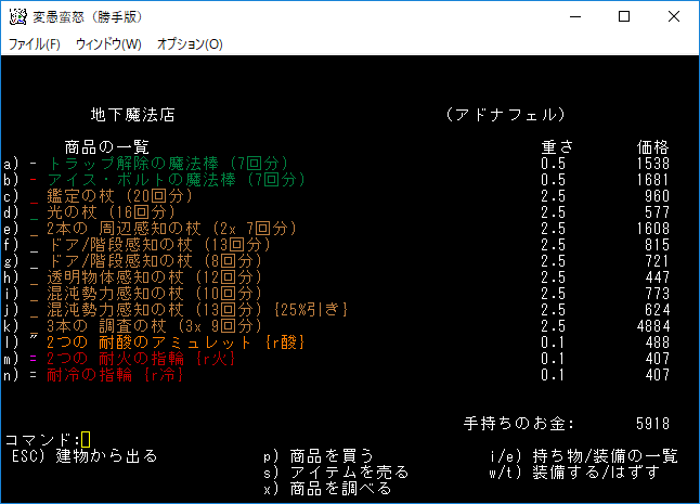 よし、鑑定の杖が陳列されておりました。こいつで片っ端から鑑定をしていこう。やっとザックを整理して一息つけます。