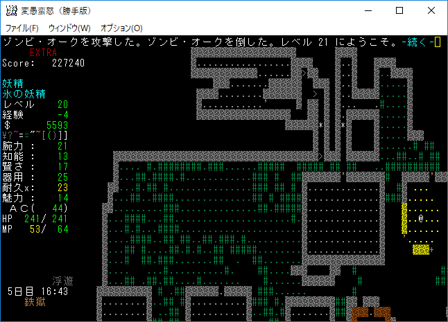 雑魚を倒してレベルが21になりました。EXTRAはすぐにレベルが上がるから楽しいです。特技が強力なユニーククラスだと向いているのかも。