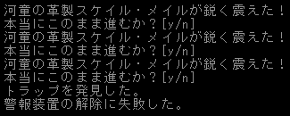 河童のエゴ鎧が罠を警告してくれました。こいつはユニークが出ても光ってくれたんです。wikiに書いてあった『追加能力』ですね。運が良かったと喜ぼうぜ。