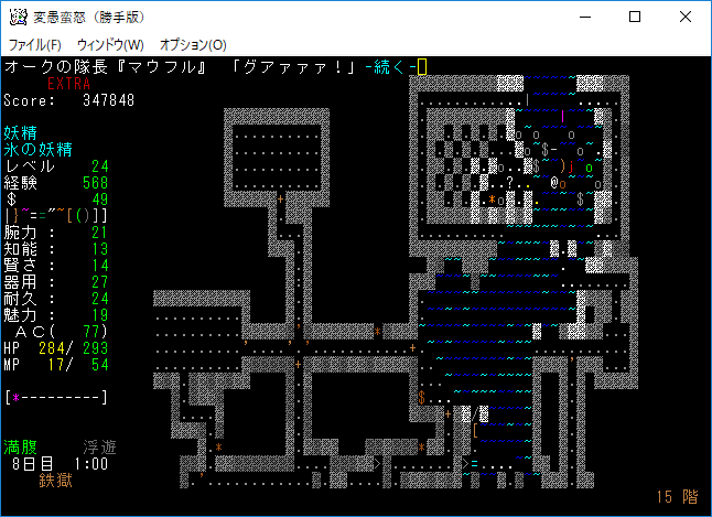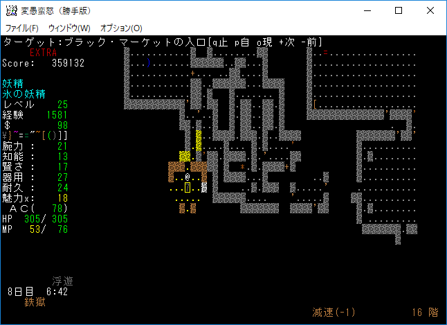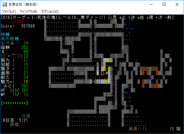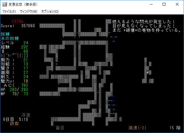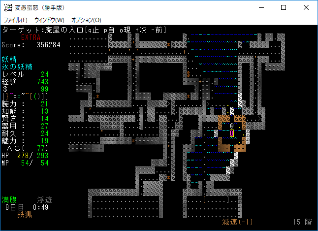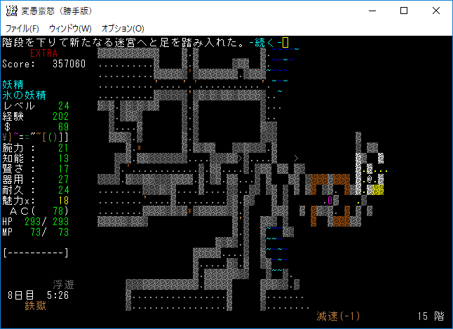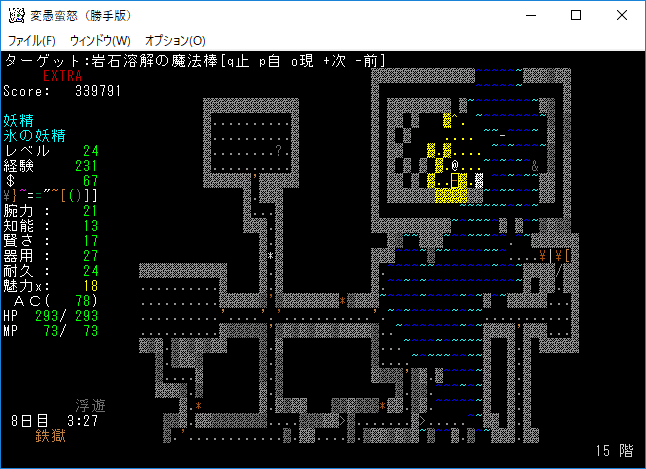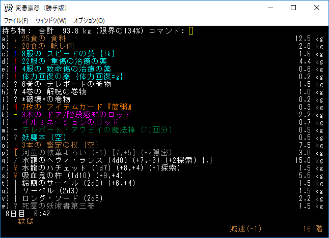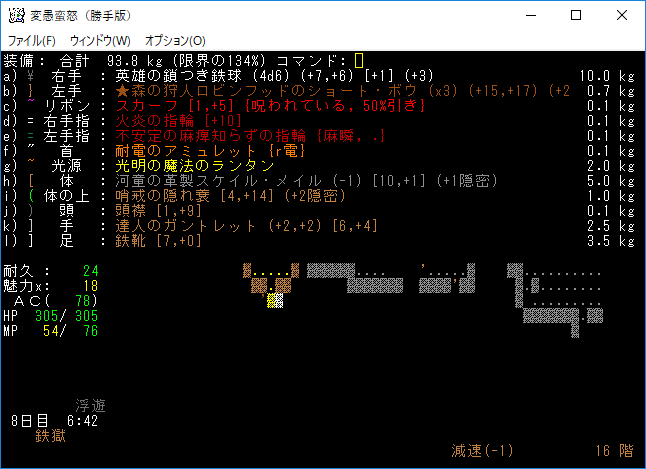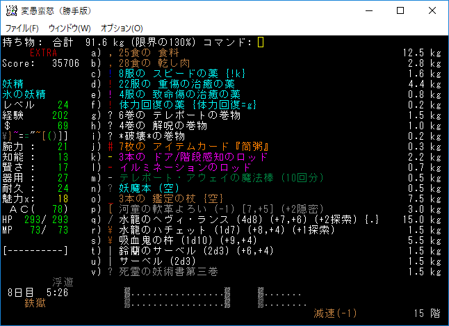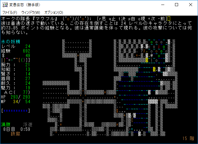 地下15階はナズーリンがいるし素晴らしい階層だった。残念ながら非常にせまいフロアだったので早々に降りることになる。サーベルを鑑定していないのは馬鹿なんですかね?