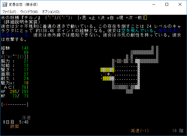 変愚蛮怒東方Project勝手版のプレイ日記を始めます。日焼けしたチルノをプレイ中です。やっとニセドラゴンを捕獲しました!こいつを育てて天上界ドラゴンにしましょう!宝物庫クエストまでは役に立ちます!