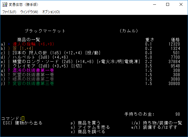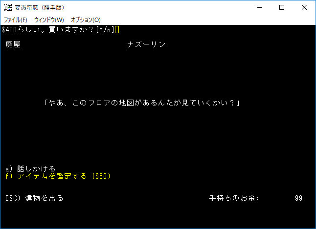 地下16階の施設はブラック・マーケットでした。金が無いから虚しく通り過ぎることになりそうだ。アイテムを売却して鑑定できるのは嬉しいです。