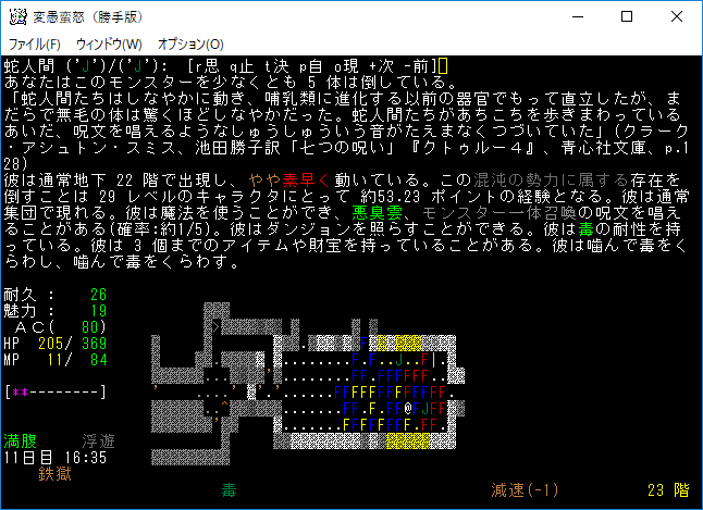 地下23階の探索が終わりました。上のアイテムを抱えながら地下24階へ降り進みます。どうも妖魔本を上手く使えないな。