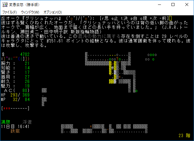 オークはアイテムを落とすから出会うと嬉しいです。雑魚どもにまぎれていた『グリシュナッハ』と対決だ。ユニークを倒してもザックがパンパンだから悩むんだよなあ。