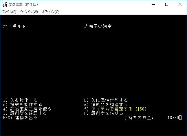 持ち物を鑑定した結果は上の画像。『サルケットス』かと思ったらランダムアーティファクトだった(笑)。*鑑定*をしないと性能が分からないじゃないか!