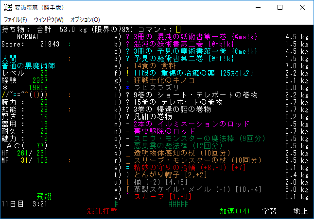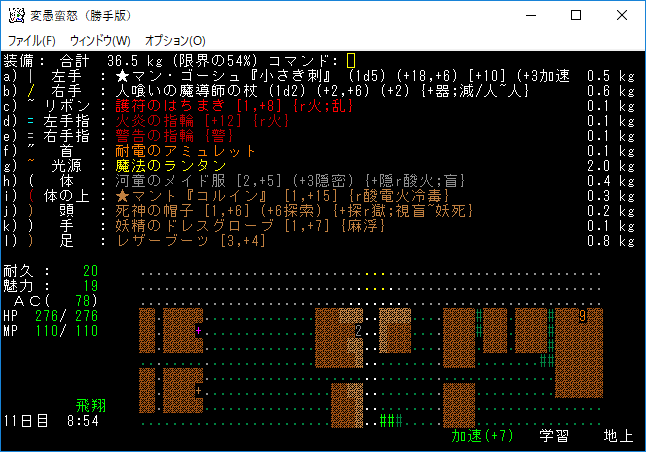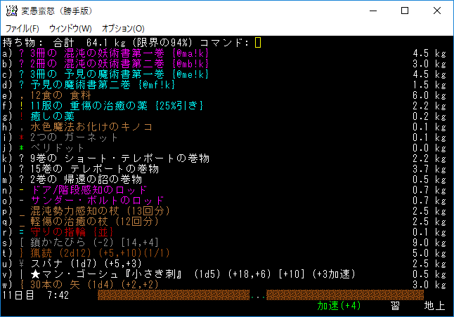 現在の装備はあんまり変わっておりません。加速が+7になったのは喜ぶべきか。この勝手版は優れたアイテムが出やすいですね。
