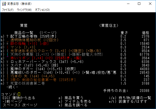 地下20階まで潜って帰還を致しました。ゴミみたいなアイテムばかりだね。店の品が変わっているかと思い、早々に戻ることにしました。ブラマへ行くと優秀そうな短剣を発見。まだお金が無くて買えなかった。