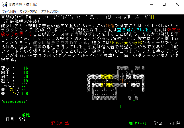 また知らないユニークが出現をしたな。『ルーミア』の登場です。夢殿大祀廟は階層以上に強い敵が出ないから倒されることは無いだろう。調査をしてみます。