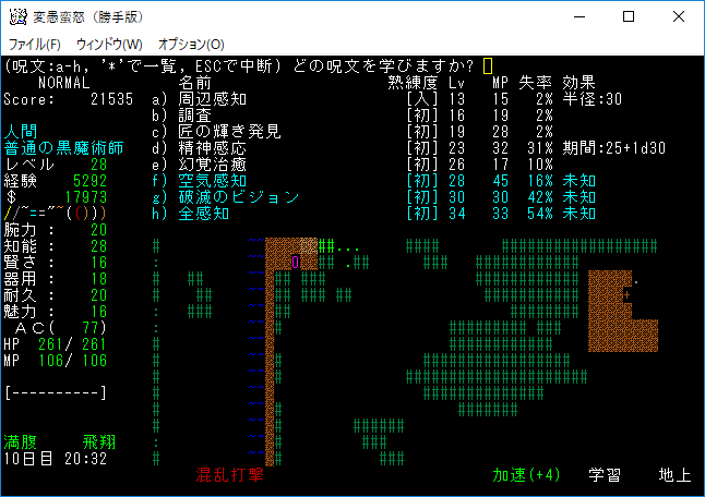 レベルが28になったから『空気感知』の魔法を覚えます。今のところは役に立たないかなあ?終盤にvaultを探したい時などは使用するかも。