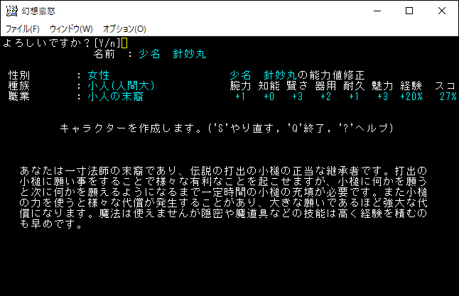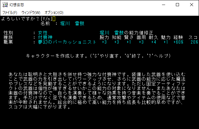 堀北真希は様々な効果を持つ音楽を奏でることができます。基本的に吟遊詩人のように戦うのだろうが、堀川雷鼓ならではの大きな特徴があります。それは固定アーティファクト(★)以外の武器を使い込んで、強力な技を習得するというものです。例えば混沌スレイの武器を成長させて装備すれば「*破壊*」を使える。博麗エゴなら「無敵化」を使用できる。ランダムアーティファクト(☆)なら・・・どうなるんだろう。堀川雷鼓の特技は難解なのだが、間違いなく、幻想蛮怒だけの戦闘システムで、育成のロマンがあり、強いユニーククラスだろう。というわけで堀北真希をプレイキャラクターの候補に入れます。