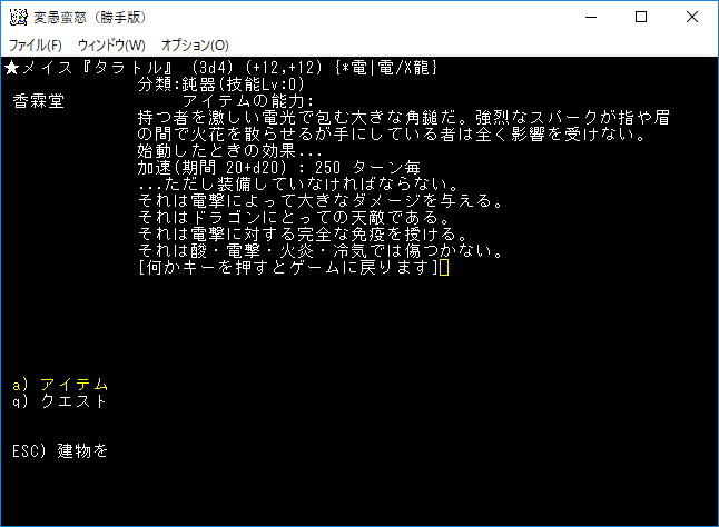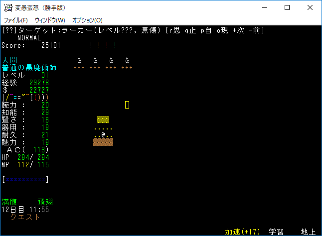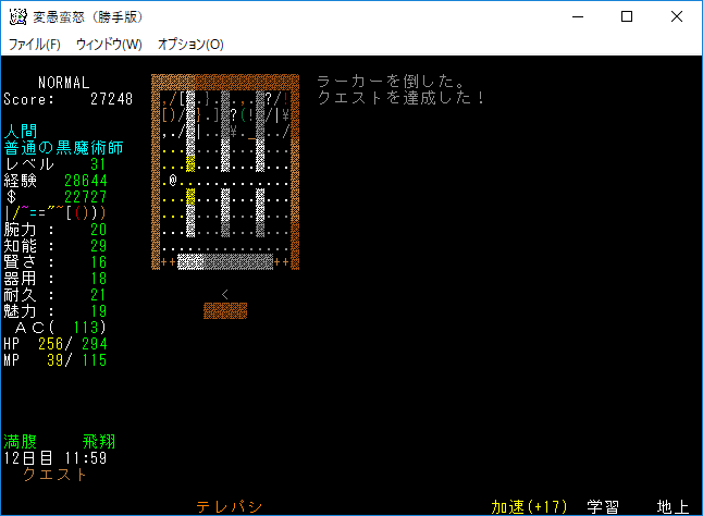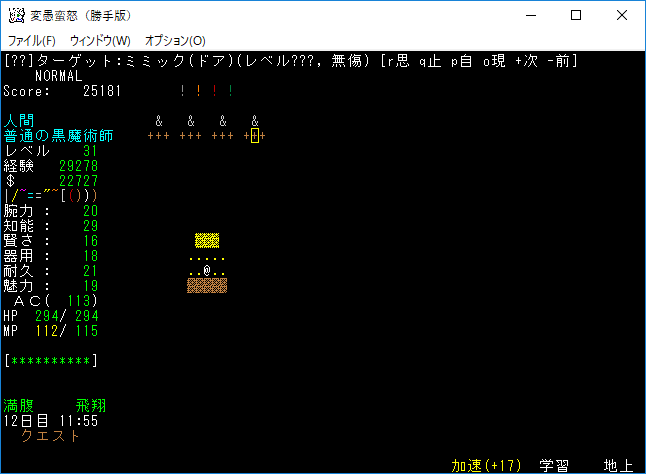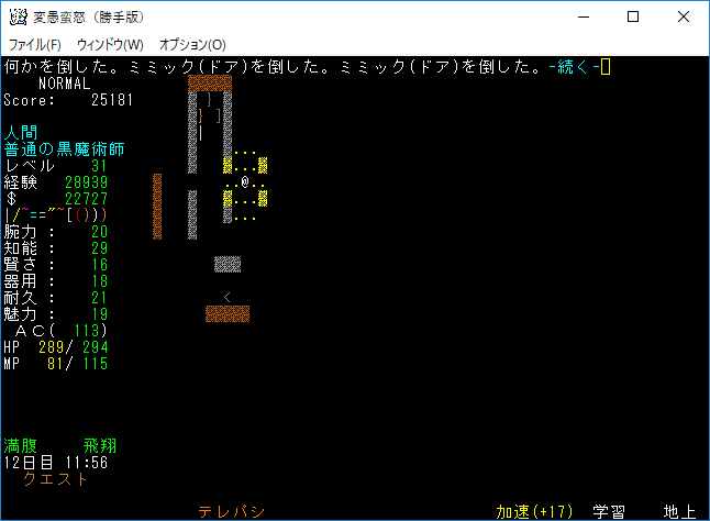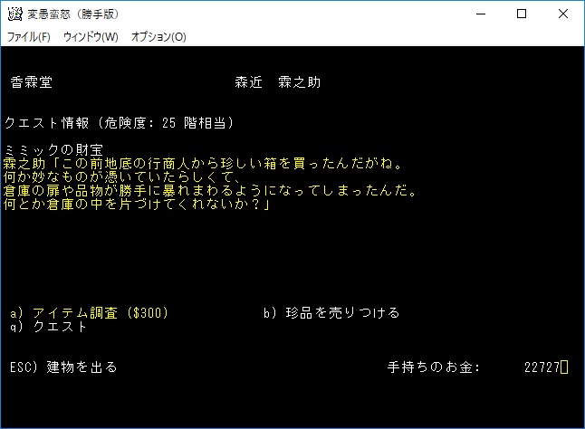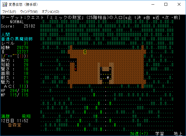 おはようございます。変愚蛮怒東方Project勝手版のプレイ日記を始めます。今回はクエスト『ミミックの財宝』に挑戦をします。このクエストは貴重なアイテムを入手しやすい。ペットがいないので緊張をしています。