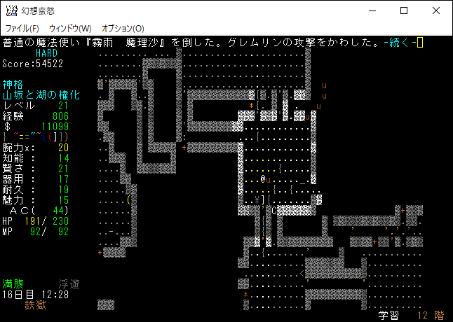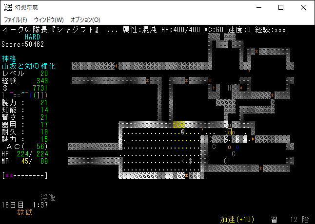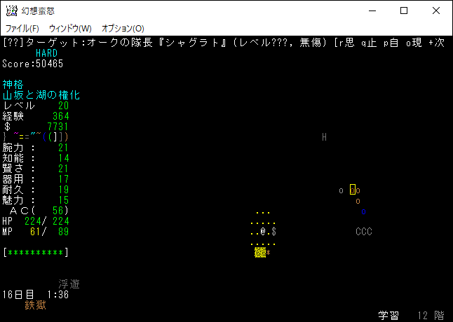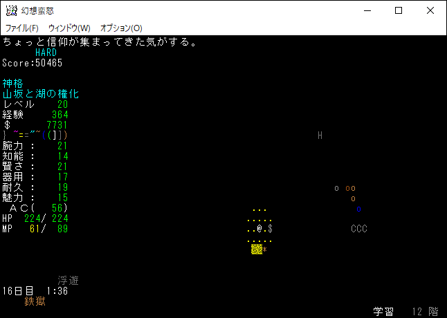幻想蛮怒のプレイ日記を始めます。難易度HARDの八坂加奈子をプレイ中です。配下にしたいモンスターを探していたら地下12階に降りてしまった。準備をしていないのにランダムクエストが始まってしまったよ!まあ間違えたのが地下12階ランクエで良かったのかもしれない。これが地下24階ランクエだったら敗北している。
