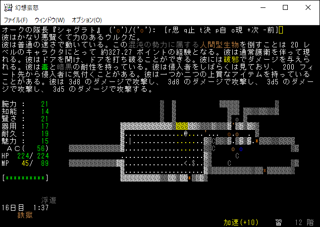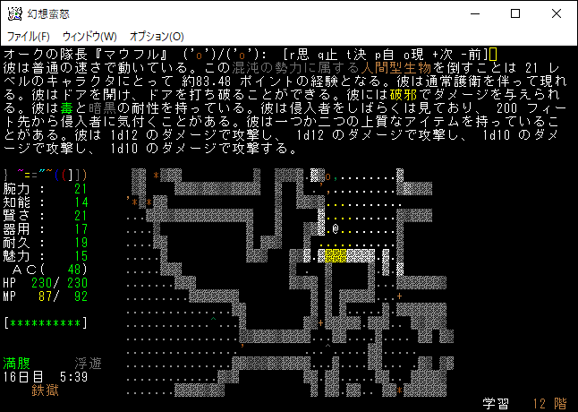 とくに苦戦することなくオークの隊長『マウフル』を撃破です。信仰ポイントを稼げたのかは忘れた。まあこの階層のユニーク狩りなんてどうでも良いのだ。はやくニセドラゴンを捕獲しないと投稿が終わらない。