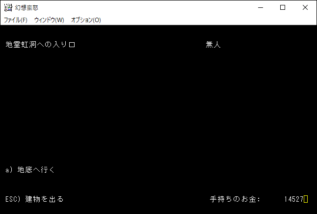 2つ目の施設は「地霊虹洞への入り口」です。これは過去に魔理沙でプレイしたときには存在しなかった施設ですね。たぶんダンジョンへの入り口でしょう。現在の加奈子はレベルが低いから後で訪問します。