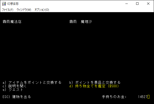 霧雨魔法店には我が家がありません。貯め込んだ魔法の素材を渡すのは飛燕の術(神秘の領域)を習得してからにしましょう。今のところ霧雨魔法店に用事はなに。香霖堂に戻って鉄獄に帰還しようぜ。