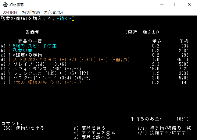 戦利品を売却したことにより所持金を増やすことはできた。ブラマで啓蒙の薬と*破壊*の巻物を買っておきましょう。どちらも重要なアイテムなので満足しました。