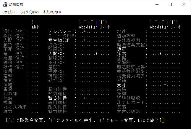 現在の能力値は上の画像。隠密が低いせいで「下水道クエスト」と「オークのキャンプ」に挑戦するのが怖すぎる。だからサンダー・ボールの魔法棒などの範囲攻撃が欲しいんだけど地下13階程度では落ちていないんだよなあ。
