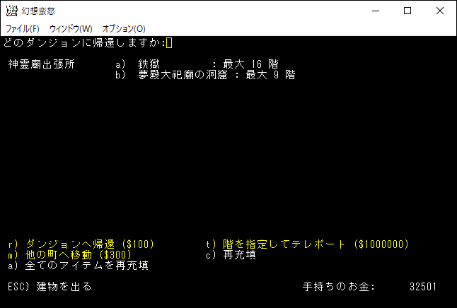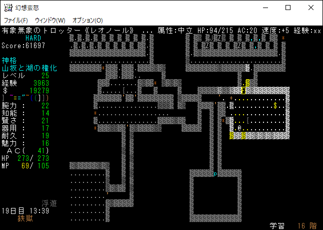 以上で探索の準備は終わり。それでは鉄獄の地下16階に帰還します。地下16階より下の階に降りる予定はありません。よーし、全モンスター感知を使ってユニークを倒しまくるぞ。今回の投稿で10体くらい狩る覚悟です。