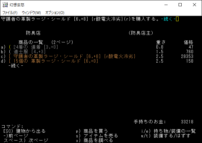 掘り出し物があるかと防具屋を覗いたところ劣化耐性の盾が販売されていました。今すぐ必要というわけではないけど買っておきましょう。加奈子は二刀流が得意ではないため盾が重要なのです。
